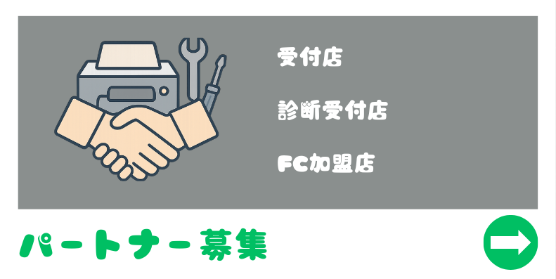 全国どこでも受付可能。送料、代引手数料は全て当店負担。ご来店が困難なお客様には郵送修理を行っております。